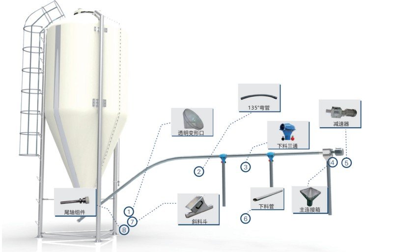 绞龙输送系统各部件示意图: